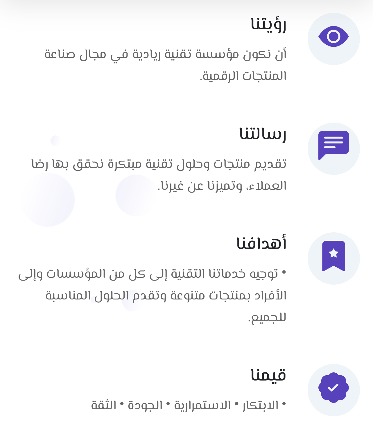 أن نكون مؤسسة تقنية رائدة في مجال صناعة المنتجات الرقمية.